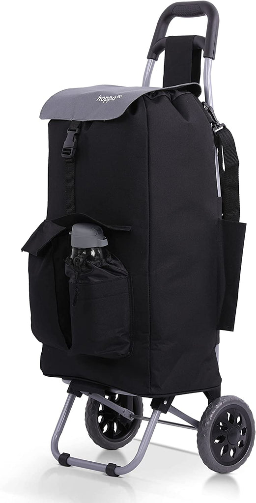 - DESIGNED TO LAST – Our Hoppa shopping trolley is shower resistant using enduring Polyester microfibre material to ensure durability even through those rainy British winters. It features a convenient drawstring closing which is hidden by an additional cover to provide extra protection for your shopping. For extra peace of mind, Hoppa offer a 2 year guarantee replacement service covering all manufacturing defects.