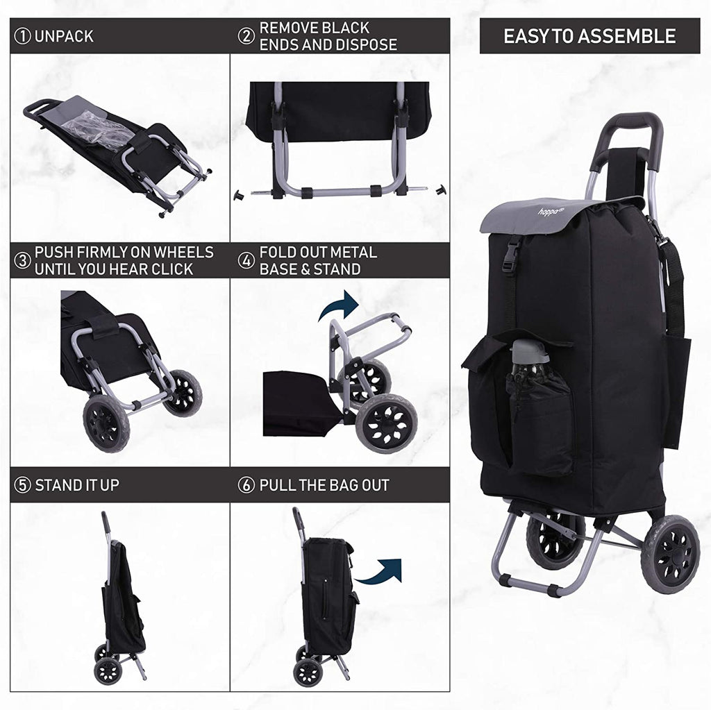 - NO MORE CARRIER BAGS – How many times have you set off for the supermarket only to get there and immediately remember the bag for life that is still sitting on your kitchen counter? Once you have experienced the ease of shopping with our Hoppa shopping trolley, you certainly won’t be forgetting this in a hurry (not to mention you’ll be doing your part for the environment by eliminating single use plastic!).
