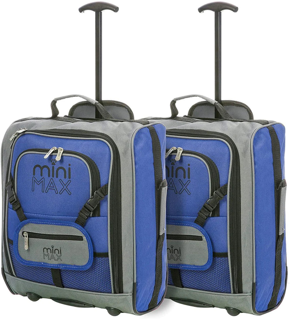 MiniMAX Childrens/Kids Luggage Carry On Trolley Suitcase with Backpack and Pouch for Your Favourite Doll/Action Figure/Bear Blue Set of 2