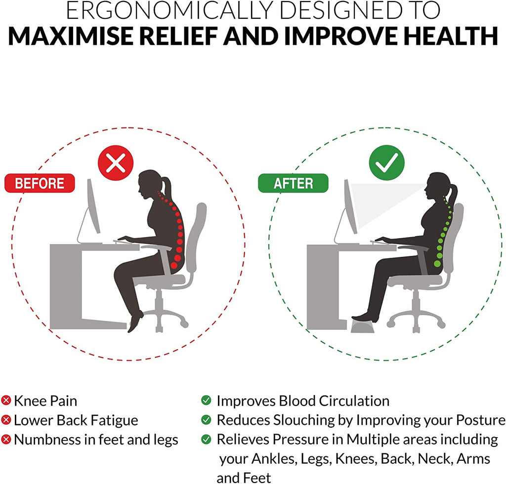 The Non-Slip base helps maintain a proper sitting position Alleviates feet soreness & Improves Blood Circulation Reduces back pain and pressure