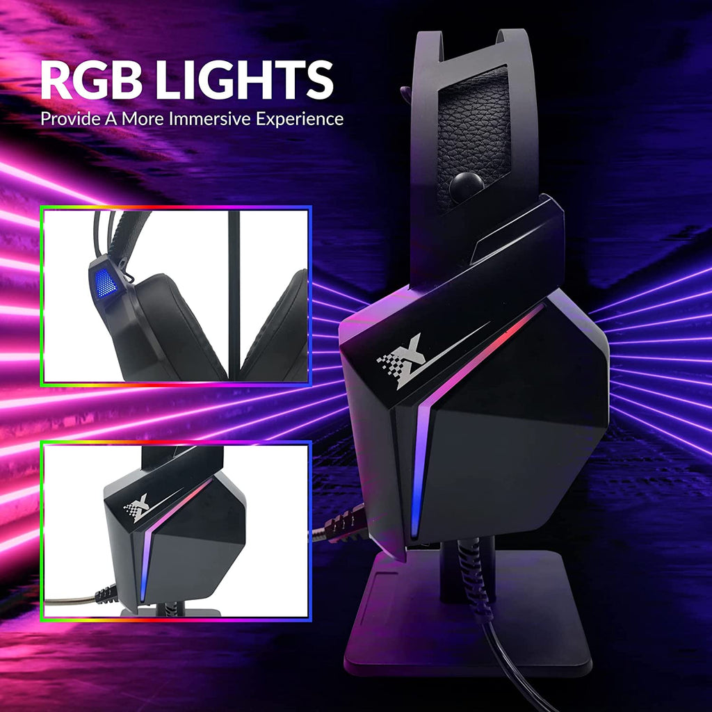 XTREME RGB Gaming Headset Stereo Surround Sound Gaming Headphones with Stand LED Lights & Adjustable Mic for PS4 PS5 PC Xbox One Nintendo Switch Mac + KEYBOARD + MOUSE + PAD